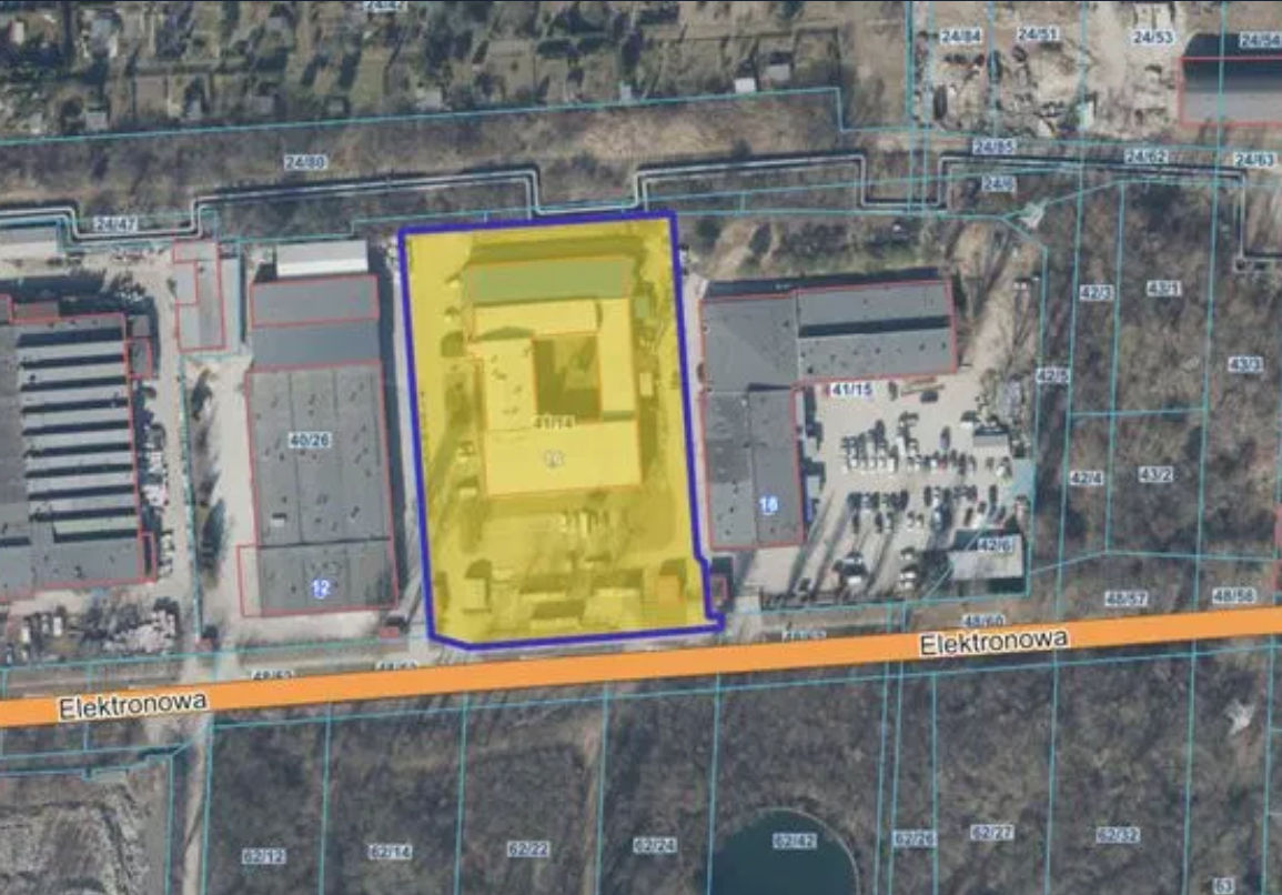 nieruchomości: użytkowanie wieczyste gruntu wraz z własnością budynków nieruchomość budynkowa położona w Łodzi przy ul. Elektronowej w obrębie P-36, jednostka ewidencyjna Łódź-Polesie, pow. m. Łódź, woj. łódzkie. Przedmiotową nieruchomość stanowi działka oznaczona nr 41/14 o powierzchni 0,8535 ha, będąca przedmiotem użytkowania wieczystego,