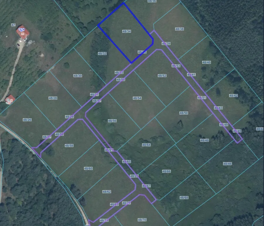 1. działka nr 48/34 o pow. 2981 m2, brak dojazdu do działki