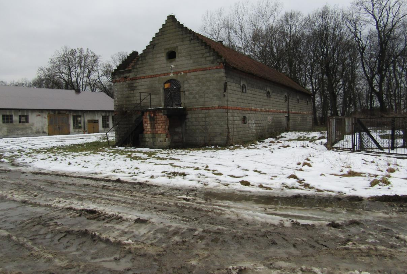 W zachodniej części działki posadowiona jest wiata stalowa, pozostała część działki wykorzystywana rolniczo. Nieruchomość nie posiada uregulowanego dostępu do drogi publicznej.