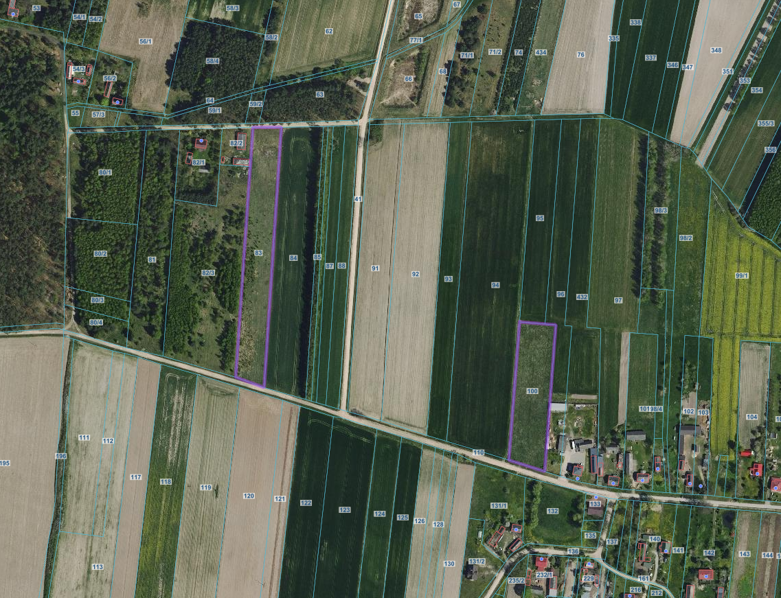 Nieruchomość gruntowa o numerze KW SRlL/00044903/8 składa się z czterech działek gruntu o numerach ewidencyjnych 83, 100, 323 oraz 324 o łącznej powierzchni 1,99 ha.