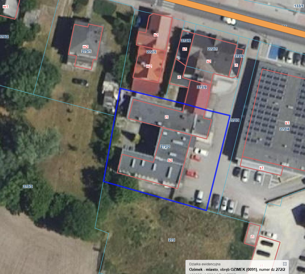 Nieruchomość gruntowa zabudowana położona w Ozimku przy ul. Wyzwolenia w gminie Ozimek, powiat opolski, województwo opolskie: działka gruntu oznaczona według operatu ewidencji gruntów numerem 272/2 AM4 obrębu Ozimek oraz budynki i budowle posadowione na przedmiotowym gruncie. Działka gruntu o powierzchni 1215 m2 na dzień 30.12.2025r. stanowi własność Gminy Ozimek. Jest to działka gruntu w użytkowaniu wieczystym do dnia 22.12.2092 roku. Nieruchomość gruntowa zabudowana: grunt jako przedmiot prawa użytkowania wieczystego oraz budynki i budowle stanowiące odrębną nieruchomość. Przeznaczenie budynku: budynek baru z nadbudowanymi pomieszczeniami biurowymi. Na przedmiotowym gruncie znajdują się budynki i budowle stanowiące odrębną nieruchomość, sposób korzystania z nieruchomości – teren zabudowany inny. Parter budynków stanowi funkcjonalną całość i pełni funkcję restauracji wraz z zapleczem kuchenno-magazynowym i częścią biurowo-socjalną natomiast piętro budynku pełni funkcję hotelową zawierającą 8 pokoi hotelowych wraz z niezbędnym zapleczem higieniczno-sanitarnym. Wejście do części hotelowej schodami zewnętrznym. Nieruchomość nie jest opodatkowana podatkiem VAT.