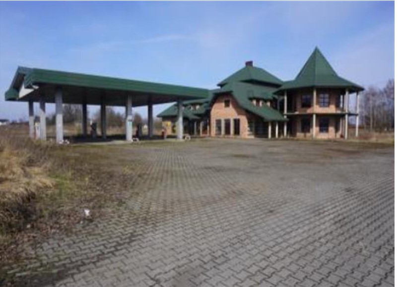 Nieruchomość komercyjna o powierzchni 21.000 m 2, nr ewidencyjny działek 184,185. Nieruchomość zabudowana budynkiem stacji paliw z restauracją i hotelem pod jednym dachem. Budynek jednokondygnacyjny, niepodpiwniczony z użytkowym poddaszem: powierzchnia użytkowa części stacji paliw-198 m2, powierzchnia użytkowa części restauracyjno-hotelowej-674 m 2. W części zajętej pod obiekt stacji paliw : sklep, pomieszczenia socjalne, sanitarne i biurowe oraz sanitariaty i prysznice dla kierowców, 2 zbiorniki paliwa płynnego, 2 dystrybutory z czterema nalewkami, 1 dystrybutor dla TIR-ów, 1 dystrybutor LPG ze zbiornikiem na gaz. Teren uzbrojony jest w następujące media: przyłącze wodociągowe, sieć kanalizacji sanitarnej (szambo) przyłącze energii elektrycznej 220V/380V, sieć telefoniczna, sieć kanalizacji burzowej, instalacja gazowa do lokalnej kotłowni gazowej, dojazd nawierzchnią bitumiczną.