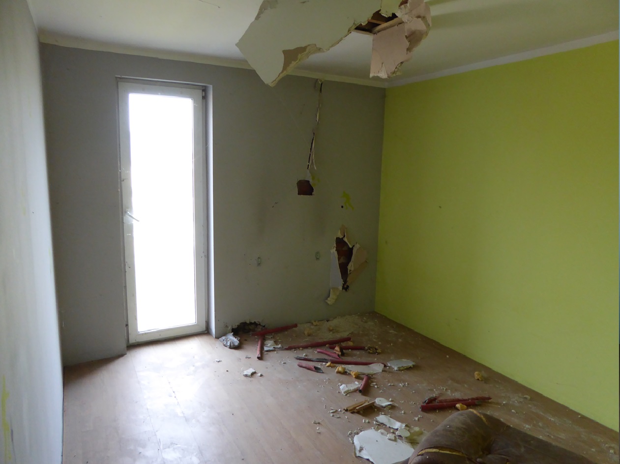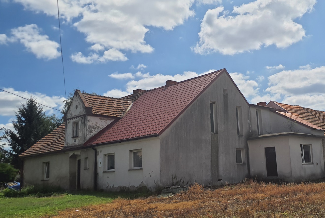 Nieruchomość stanowi działka gruntu nr 66/1 o powierzchni 0,0725 ha, zabudowana częścią budynku mieszkalnego jednorodzinnego, parterowego z poddaszem użytkowym. Budynek podpiwniczony wzniesiony w technologii tradycyjnej. Murowany z cegły ceramicznej. Stropy drewniane. Dach dwuspadowy o konstrukcji drewnianej, kryty blachodachówką, ocieplony wełną mineralną. Elewacja z tynku cienkowarstwowego, spękanego z licznymi wybrzuszeniami oraz odspojony z powodu dużego zawilgocenia ścian parteru. Do budynku dobudowany jest parterowy ganek. Do budynku przylega budynek gospodarczy nienależący do dłużników. Powierzchnia zabudowy wynosi 87,00m2. W środku budynku brak stolarki drzwiowej. W holu wejściowym płytki ceramiczne. W salonie na parterze oraz na piętrze panele. Podłogi zniszczone nadające się do wymiany. Schody wewnętrzne betonowe częściowo wykończone płytkami ceramicznymi. Ściany wewnętrzne zawilgocone i porażone pleśnią kwalifikują się do zbicia, osuszenia i położenia nowego tynku. W łazience na całej wysokości płytki ceramiczne. W budynku zdemontowano wszelkie instalacje. Brak grzejników. Do nieruchomości przynależy piwnica, która według oświadczenia sąsiada, jest ciągle zalana wodą. Działka w całości składa się z gruntów rolnych zabudowanych (Br-R IIIa). Działka nieogrodzona, bez bramy wjazdowej. Do nieruchomości dojazd korzystny z drogi publicznej. Działka uzbrojona jest w energie elektryczną, wodociągi, zbiornik bezodpływowy na ścieki bytowe. Brak dostępu do sieci gazowej.
