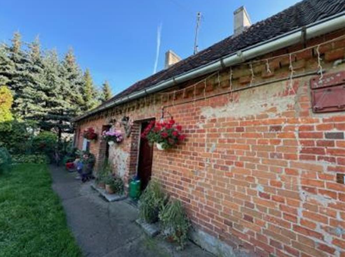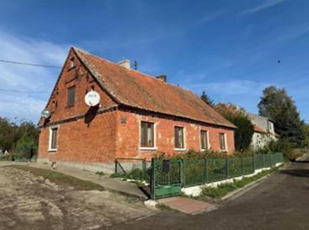 Na działce posadowiony został budynek mieszkalny – murowany w technologii tradycyjnej, jednokondygnacyjny z poddaszem użytkowym, w zabudowie wolnostojącej, częściowo podpiwniczony. Rok zakon budowy to 1930. Pow. zabudowy domu – 123,00m2, pow. uży. domu – 162,00m2. Budynek wzniesiony w technologii trąd., murowanej z cegły pełnej. Budynek przekryty dachem dwuspadowym. Pokrycie dachu – dachówka. Wejście odbywa się poprzez pomieszczenie komunikacyjne, które łączy się bezp. z częścią dzienną. Znajdują się na nim 3 pokoje, kuchnia, łazienka z WC, kotłownia. Na poddaszu budynku znajdują się sypialnie. Wszystkie okna PCV, stolarka drzwiowa drewniana. Budynek ogrzewany piecem na węgiel znajdującym się w kotłowni. Posadzki betonowe wyłożone panelami MDF oraz terakotą. W pokojach ściany malowane farbą emulsyjną. W łazience i kuchni na podłodze – terakota. Sanitariaty w dobrym stanie. Budynek zadbany. Stan techn budynku oceniono jako zadowalający jak dla tego typu obiektów,
