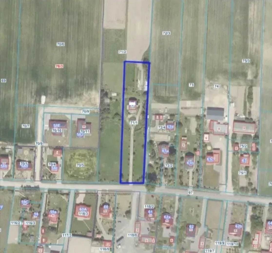 zabudowanej działki gruntu o numerze ewidencyjnym 71/1 o powierzchni 0,40 ha. Działka w ewidencji gruntów figuruje jako grunt rolny zabudowany klasy Br-RIIIb, Br-RIVa, grunt orny RIVa. Zgodnie z miejscowym planem zagospodarowania przestrzennego działka położona jest na terenie przeznaczonym pod zabudowę zagrodową MR (ok. 63% powierzchni i pas 100m w głąb działki), teren rolny bez prawa do zabudowy RP oraz teren dróg gminnych (nieznacznie). Dojazd do działki odbywa się drogą publiczną – gminną. Nieruchomość uzbrojona jest w kanalizację sanitarną, kablowe przyłącze energetyczne, gaz i wodociąg. Działka ogrodzona jest siatką na słupkach. Brak bramy wjazdowej i furtki. Działka zabudowana jest wolnostojącym budynkiem mieszkalnym parterowym z poddaszem użytkowym, niepodpiwniczonym, o pow. zabudowy 82 m2, użytkowej 101,84m2. Budynek wzniesiony w 2006 r. o konstrukcji szkieletu drewnianego.
