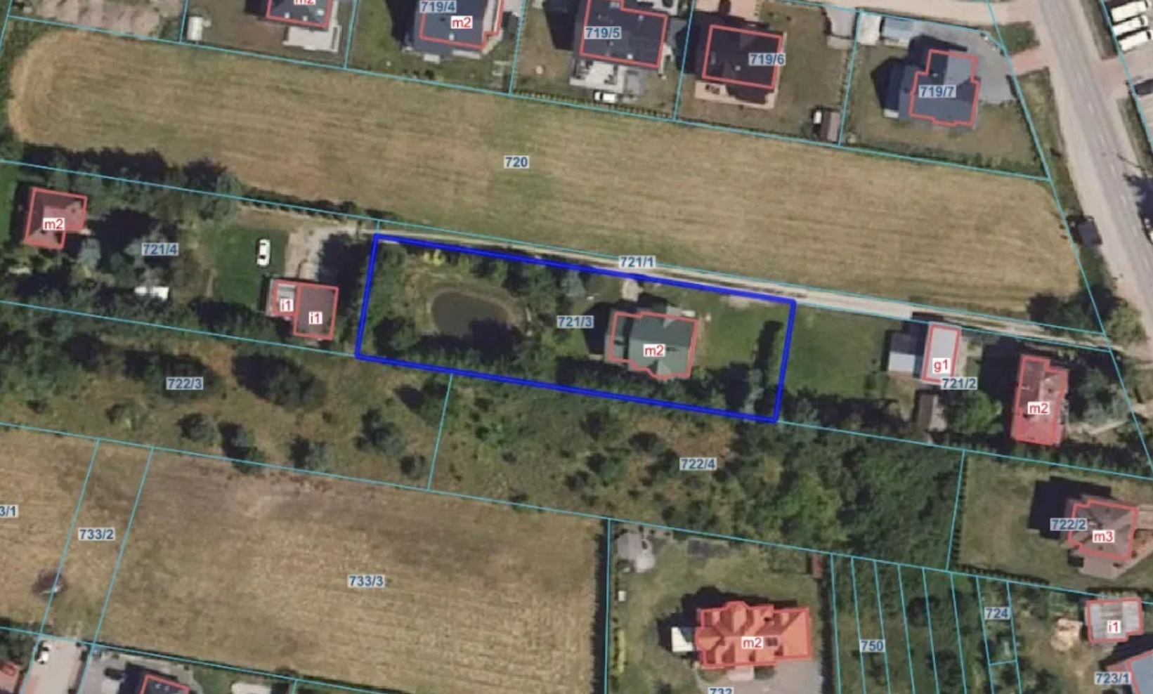Nieruchomość zabudowana oznaczona nr działki 721/3 o pow. 0,1745 ha położonej pod adresem: 16-002 Dobrzyniewo Fabryczne, ul. Królewska. Działka zabudowana budynkiem mieszkalnym wraz ze stawem, zagospodarowana, porośnięta drzewami i krzewami. Kształt działki – regularny prostokątny. Ogrodzenie panelowe. Nawierzchnia drogi dojazdowej – gruntowa, częściowo utwardzona. Nieruchomość posiada pośredni dostęp do drogi publicznej, tj. drogi powiatowej ul. Królewskiej poprzez działkę stanowiącą własność osób prywatnych o numerze 721/1. W zasięgu nieruchomości znajdują się: sieć elektroenergetyczna, wodociągowa, telefoniczna, kanalizacja sanitarna. Budynek mieszkalny jednorodzinny w zabudowie wolnostojącej 1,5 kondygnacyjny, murowany, dach dwuspadowy o konstrukcji drewnianej. Budynek powstał w latach 2001-2008r. 28-05-2001r. zatwierdzono projekt budowalny i wydano pozwolenie na budowę. Powierzchnia użytkowa 138,9 m2, powierzchnia zabudowy 148,00 m2. Zgodnie z dokumentacją projektową przedstawione rzuty parteru i poddasza nie odzwierciedlają faktycznego układu pomieszczeń. Obiekt został zrealizowany w sposób odbiegający od zatwierdzonego projektu budowlanego. Zgodnie z pismem z dn. 06-08-2025r. Powiatowego Inspektoratu Nadzoru Budowlanego brak jest dokumentów związanych z oddaniem do użytkowania w/w budynku. Podczas oględzin nieruchomości właściciel potwierdził, że budynek mieszkalny nie został oddany do użytkowania. Zgodnie ze studium uwarunkowań i kierunków zagospodarowania przestrzennego gminy Dobrzyniewo Duże zatwierdzone uchwałą nr XIX/148/20 Rady Gminy Dobrzyniewo Duże nieruchomość znajduje się na terenie istniejącej zabudowy mieszkaniowej jednorodzinnej z towarzyszącą zabudową zagrodową i usługową. Działka znajduje się w zasięgu głównego zbiornika wód podziemnych nr 218 pradolina rzeki Supraśl, a także w projektowanej strefie ochronnej głównego zbiornika wód podziemnych nr 218 pradolina rzeki Supraśl Zgodnie z uchwałą nr X/73/24 Rady Gminy Dobrzyniewo Duże działka znajduje się na obszarze zdegradowanym oraz na obszarze rewitalizacji. Przeznaczenie nieruchomości jest zgodne z faktycznym stanem jej zagospodarowania.