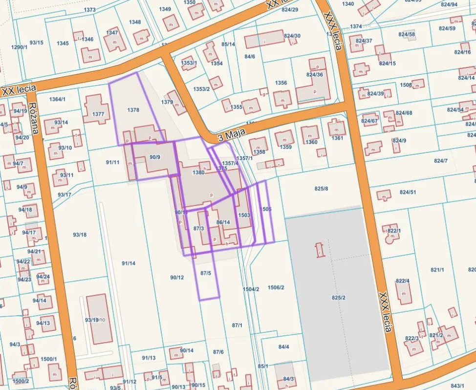 Nieruchomości gruntowe, zabudowane budynkami produkcyjno-usługowymi o powierzchni łącznej 3 410 m², położonych w miejscowości Osiek N/Notecią, gm. Wyrzysk, stanowiących działki nr 1380, 90/11, 90/9, 1378, 1503, 1505, 87/3, 1357/4, 87/5, 86/14, 1375, 1504/1, obręb ewidencyjny 0015, o powierzchni całkowitej 0,8670 ha, dla których prowadzona jest Księga Wieczysta o numerze PO2H/00xxxxx/8 przez Sąd Rejonowy w Chodzieży, V Zamiejscowy Wydział Ksiąg Wieczystych z siedzibą w Wyrzysku oraz działki nr 1357/3, 1357/1, obręb ewidencyjny 0015, o powierzchni całkowitej 0,0330 ha, dla których prowadzona jest Księga Wieczysta o numerze PO2H/000xxxxx/5 przez Sąd Rejonowy w Chodzieży, V Zamiejscowy Wydział Ksiąg Wieczystych z siedzibą w Wyrzysku.