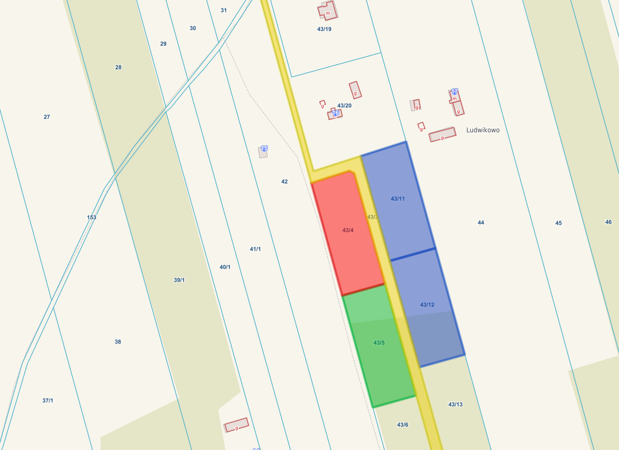 2) nieruchomości gruntowej niezabudowanej stanowiącej działkę nr 43/3 o powierzchni 0,6114 ha, położona w obrębie Ludwikowo, gmina Joniec i posiadająca założoną Księgę Wieczystą nr PL1L/000xxxxx/1 w Wydziale IV Ksiąg Wieczystych Sądu Rejonowego w Płońsku.