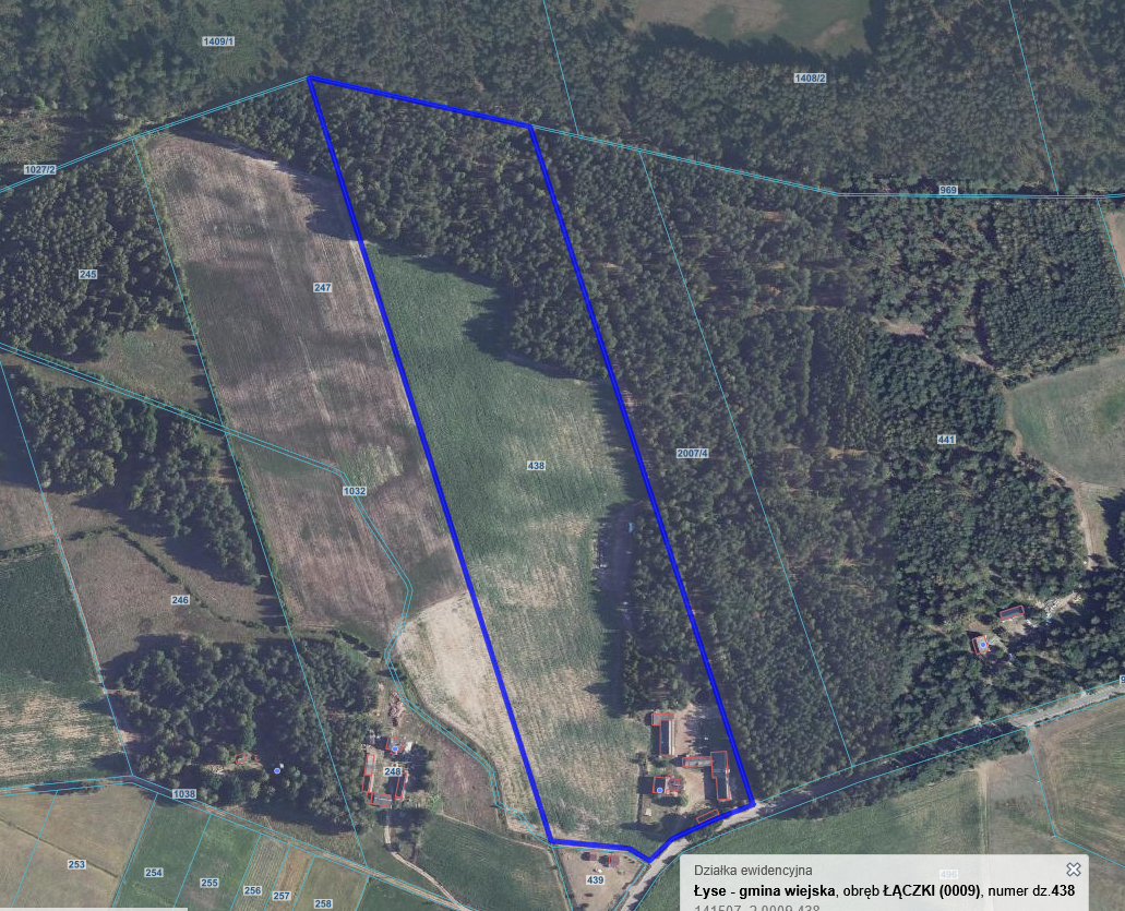 Licytacja będzie prowadzona z części zabudowanej nieruchomości, którą stanowi działka ewidencyjna nr 438 o pow. 7,8210 ha. Działka jest zabudowana siedliskiem gospodarstwa rolnego, w skład którego wchodzą: