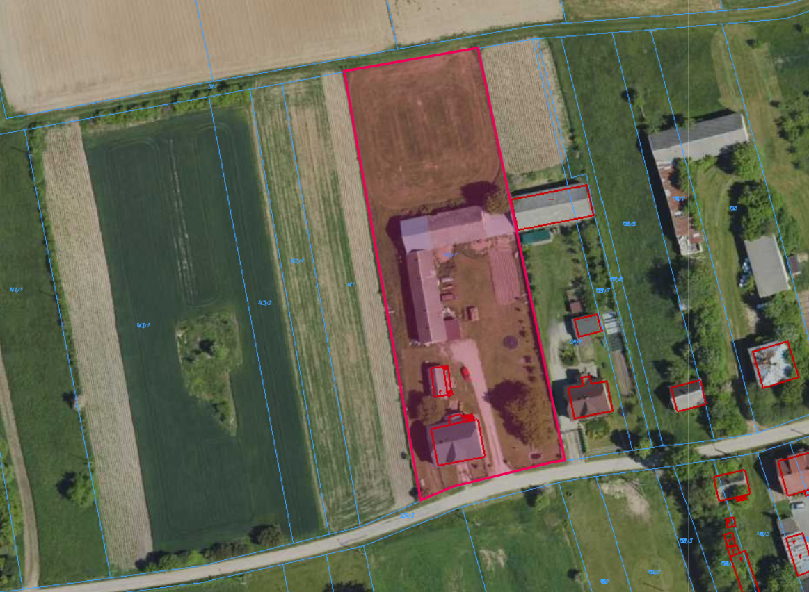 Nieruchomość XXX – działki ew.nr: 83/6, 83/7, 83/13, 83/14, 83/15 – są to działki rolne użytkowane rolniczo, natomiast działki ew. nr 140/4, 140/7 – są to działki niezabudowana, częściowo ogrodzone, posiadają media infrastruktury technicznej : energia, wodociąg, telefon. Przez działki przebiega napowietrzna linia energetyczna niskiego napięcia. Na działce nr 140/4 znajduje się przystanek autobusowy Nieruchomość YYY jest zabudowana budynkiem mieszkalnym jednorodzinnym w zabudowie zagrodowej (Budynek z lat 80-tych, murowany o pow. zabudowy 170m2 ), budynkiem gospodarczym- garaż ( Budynek w zabudowie gospodarczej murowany z cegły do kapitalnego remontu) , budynkiem obory( Budynek produkcji rolniczej,murowany z pustaka i cegły do kapitalnego remontu), budynkiem stodoły( Budynek produkcji rolniczej, murowany z pustaka i cegły do kapitalnego remontu) , oraz budynkiem dojarni(Budynek produkcji rolniczejmurowany z pustaka, dostosowany do przeznaczenia, stan dobry)
