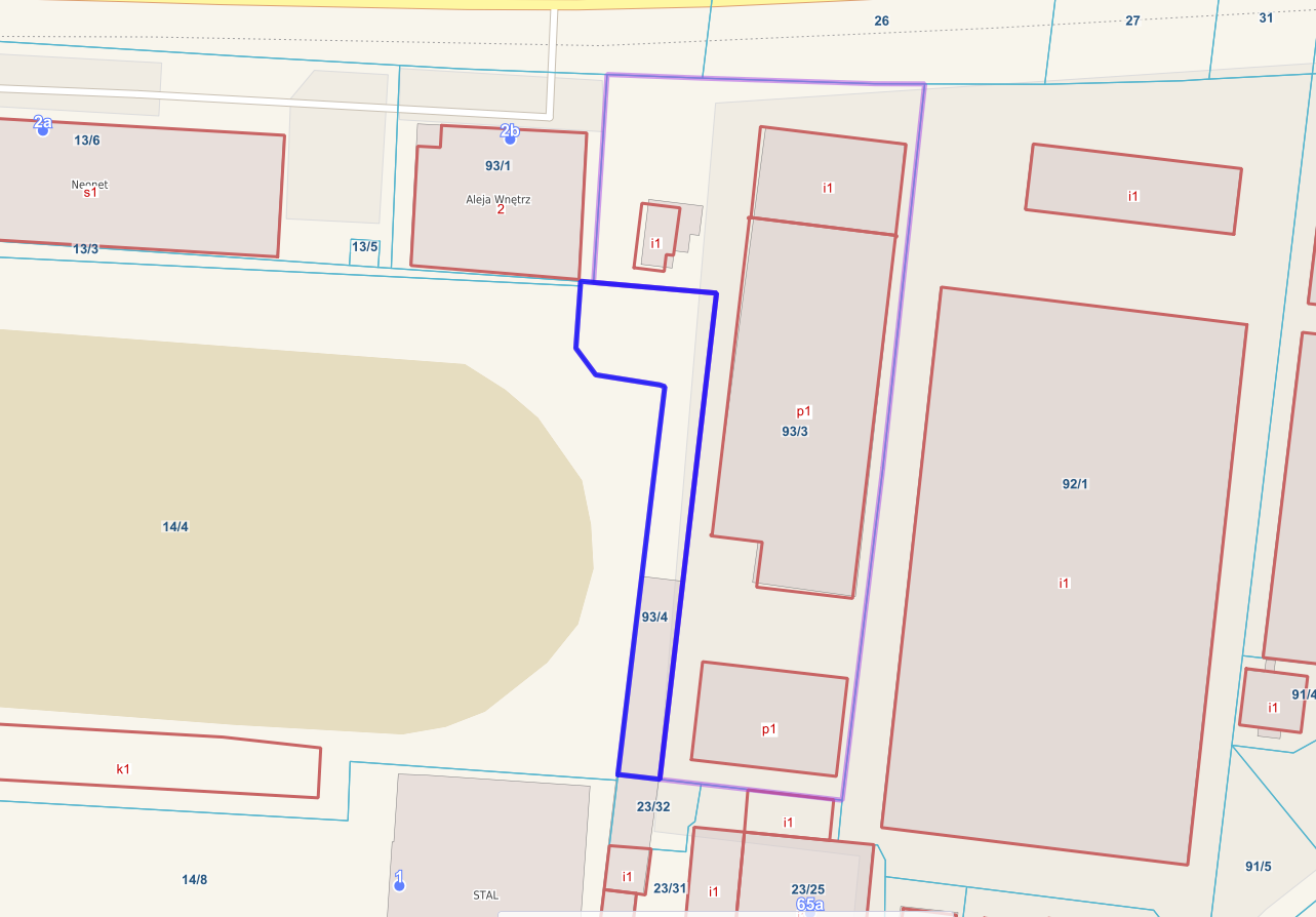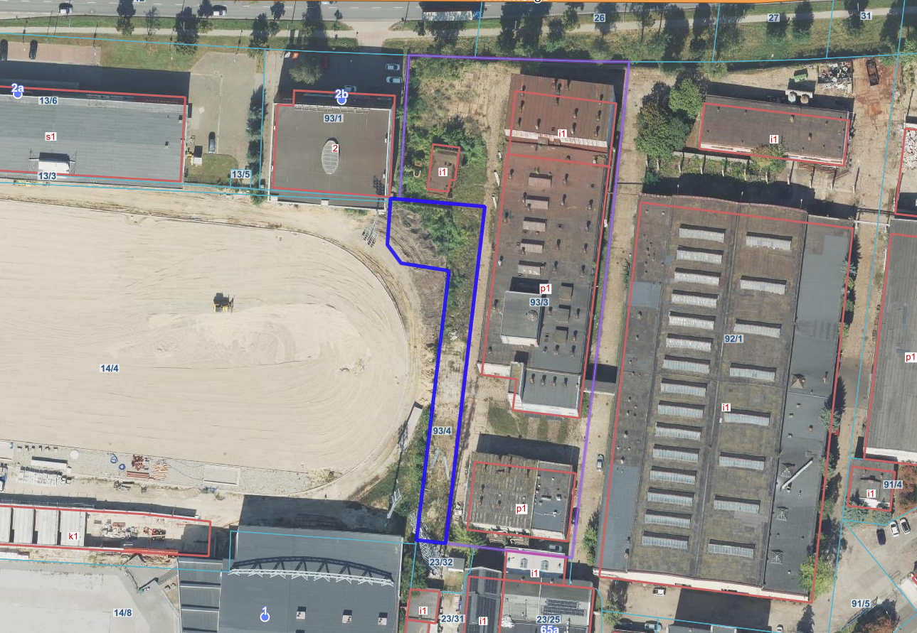 Działka nr 93/4 o powierzchni 1 041 m2 to tereny przemysłowe ,niezabudowane.