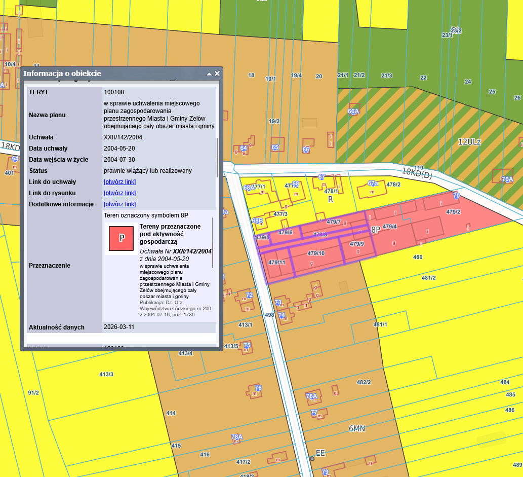 Działki gruntu nr 479/5, 479/6, 479/7, 479/8, 479/9, 479/10 i 479/11, obręb 32 Sromutka, gmina Zelów mają łączną powierzchnię 0,3260 ha Działki z dostępem do drogi gminnej, asfaltowej oraz w pełni uzbrojone (prąd, woda, kanalizacja). W MPZP oznaczone symbolem 8P- tereny przeznaczone pod aktywność gospodarczą.