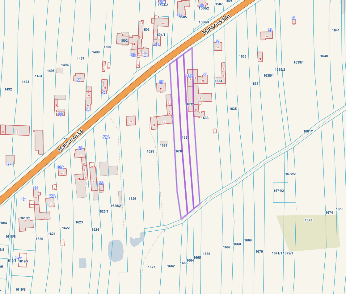 Nieruchomość gruntowa zabudowana, działki nr 1630,1631,1632 stanowiące funkcjonalną całość o łącznej powierzchni 0,5362 ha. Nieruchomość posiada bezpośredni dostęp do drogi publicznej – zjazd na nieruchomość z ulicy Małczewska.