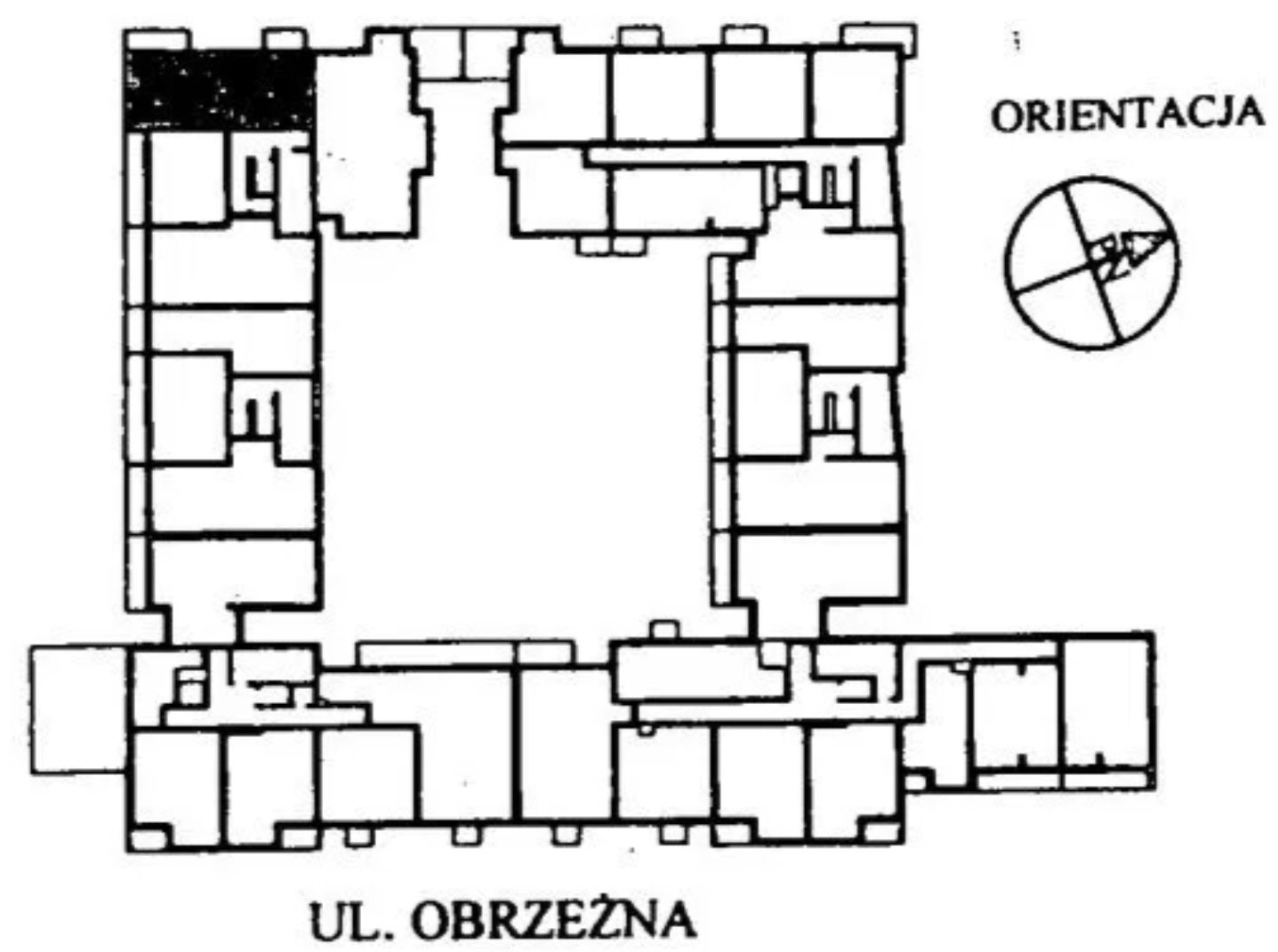 Przedmiotem licytacji jest lokal mieszkalny położony przy ul. Obrzeżnej w Warszawie, znajdujący się w klatce schodowej, która położona jest w lewym wewnętrznym narożu budynku. Mieszkanie położone jest na drugim piętrze budynku. Jego powierzchnia użytkowa wynosi 79,85 m2. Składa się on z hollu, pokoju, kuchni, dwóch sypialni oraz łazienki i wc. Przylegają do niego dwa balkony o powierzchni 7,86 m2 i 4,95 m2. Przynależy do niego pomieszczenie gospodarcze o powierzchni 5,14 m2. Mieszkanie rozkładowe. Po wejściu do mieszkania znajdujemy się w hollu, z którego dostępne są na lewo pokój z kuchnią i balkonem, na wprost sypialnia a po prawo wc, łazienka i sypialnia z balkonem. Mieszkanie narożne; okna salonu skierowane na południe, pozostałe okna skierowane na zachód (osiedlowe patio). Balkony od strony zachodniej. Uwaga: W dziale I-O w księdze wieczystej wskazano łączną powierzchnię mieszkania i pomieszczenia gospodarczego 84,99m2. Powierzchnia pomieszczenia gospodarczego wynosi zgodnie z treścią KW 5,14m2, powierzchnia lokalu 79,85m2.