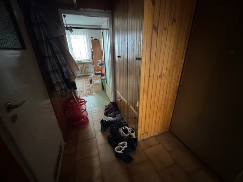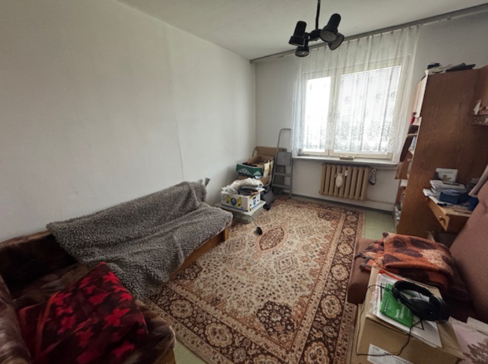 Stan techniczny lokalu mieszkalnego przeciętny , standard wykończenia przeciętny. Wykończenie lokalu: tynki wewnętrzne cementowo-wapienne, ściany malowane. Na podłodze w pokojach płytki PCV, w kuchni i w łazience – terakota, na ścianach glazura. Stolarka okienna drewniana, stara. Na suficie w kuchni plamy oraz częściowe wypaczenie tynku na skutek zalania. W przedpokoju na ścianach boazeria. Lokal posiada pomieszczenie przynależne: piwnicę o powierzchni 5,19 m². Lokal o wysokim stopniu zużycia. Do lokalu doprowadzone jest przyłącze gazowe.