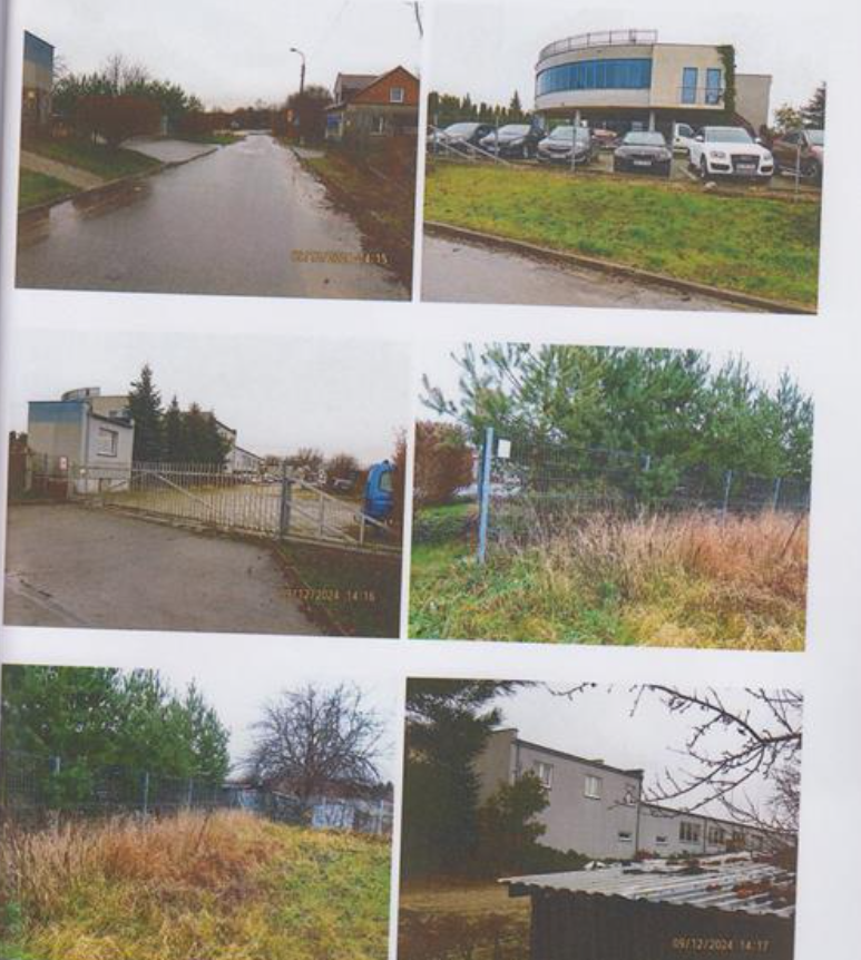 Działki są zabudowane budynkiem serwisu samochodów, który składa się z 2 kondygnacyjnego budynku socjalno-magazynowo-biurowego oraz l-kondygnacyjnej hali serwisowej z myjnią, kotłownią i magazynem. Budynek jest niepodpiwniczony, konstrukcji tradycyjnej murowanej o powierzchni użytkowej 1104,15 m2. Teren działki jest płaski, równy. Ma urządzone wjazdy, drogi wewnętrzne i parkingi z kostki brukowej oraz asfaltu oraz urządzoną zieleń z licznymi nasadzeniami drzew i krzewów ozdobnych. Działki są ogrodzone ogrodzeniem panelowym typu przemysłowego.