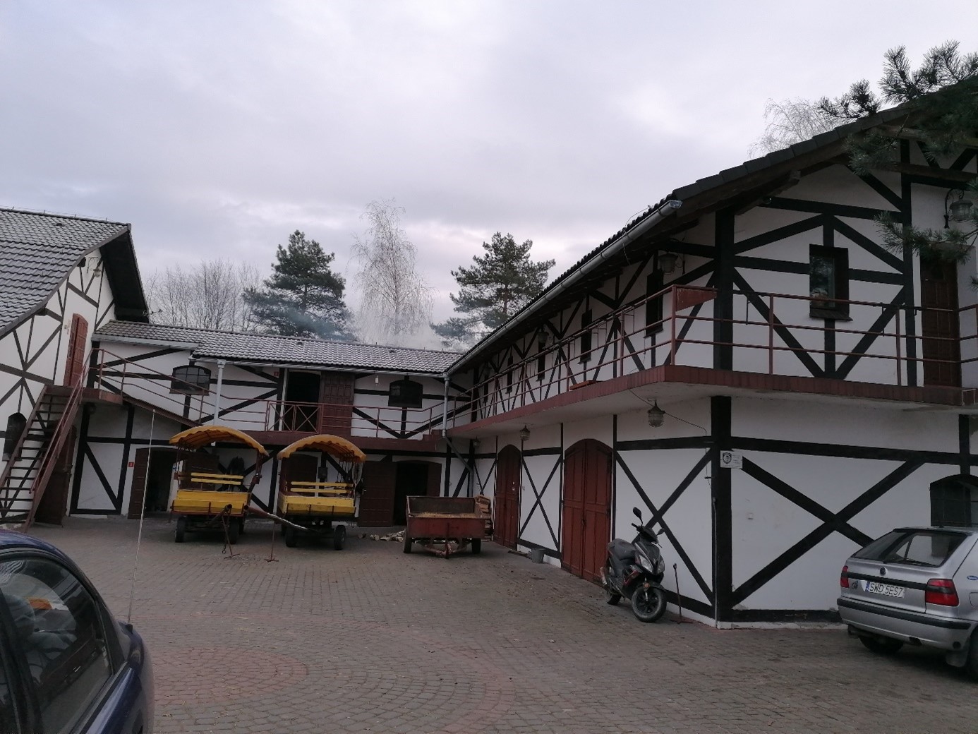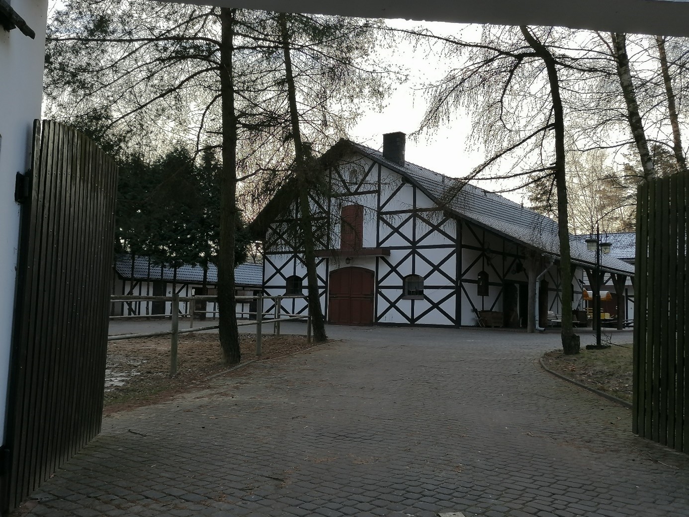 Na nieruchomościach znajdują się elementy małej architektury w postaci: drewnianego budynku kuźni, ptaszarni, wybiegu dla koni (karuzeli), parkur wraz z pomieszczeniem dla sędziów, lążownia, pomost stalowy.
