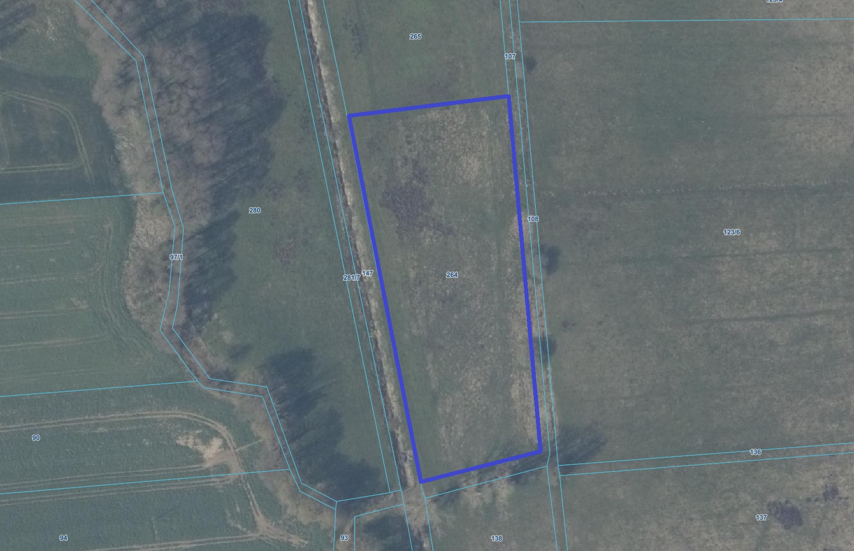 Nieruchomość składa się z działki gruntu nr 264 o powierzchni 0,81 ha – w tym łąki trwałe ŁlVa o pow. 0,80 ha i grunty pod rowami W-Ł1V 0,01 ha Przez działkę przebiega rurociąg wysokociśnieniowy do przesyłu gazu ziemnego. Zgodnie z studium uwarunkowań i kierunków zagospodarowania przestrzennego zatwierdzonego